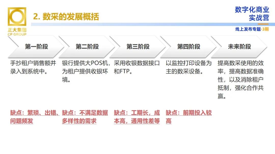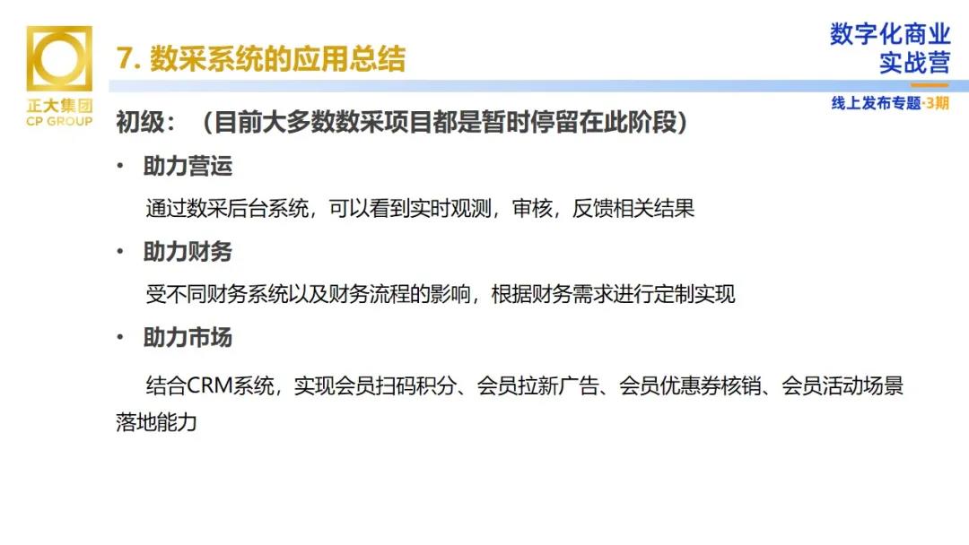 數(shù)據(jù)采集為正大商業(yè)帶來(lái)了哪些價(jià)值?向陽(yáng)先生表示,數(shù)采對(duì)于商業(yè)運(yùn)營(yíng)來(lái)講分為初級(jí)、中級(jí)和高級(jí)階段。