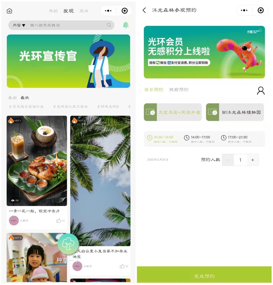 譬如海鼎科技聯(lián)合項目方打造的重慶光環(huán)購物公園小程序,匹配了主要功能如:種草、任務中心、個性化服務(如:植物園預約)等等。在今年四月下旬盛大開幕期間,累計訪問量及新增會員人數(shù)均取得了不俗的成績。