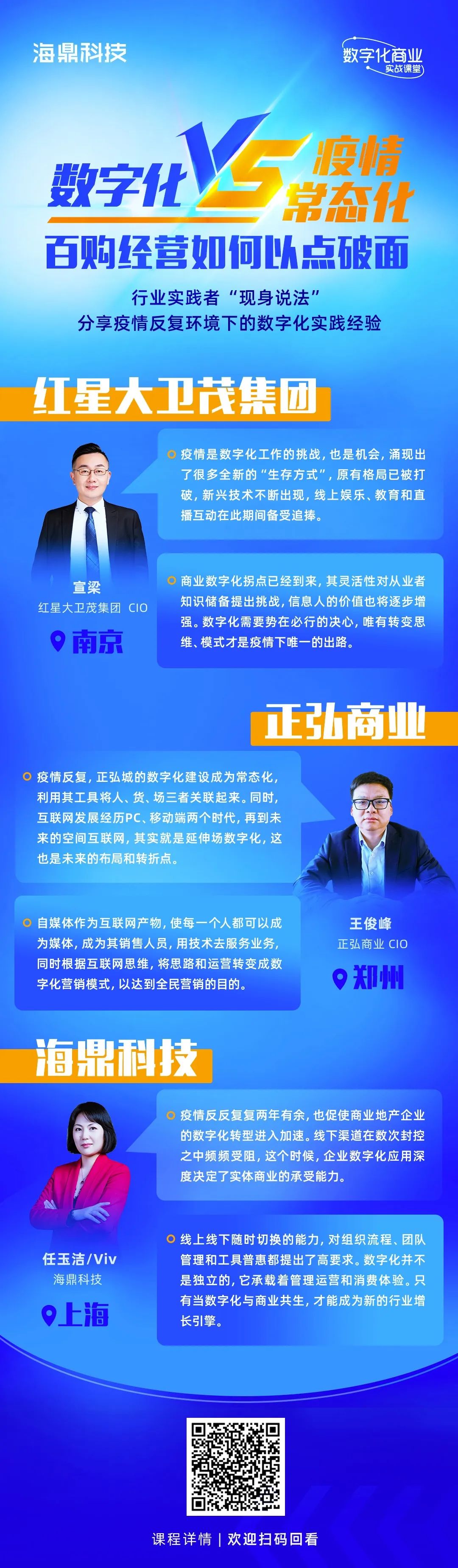 在此大環(huán)境下,海鼎科技于5月27日舉辦數字化商業(yè)實戰(zhàn)課堂第五期——《數字化VS疫情常態(tài)化·百購經營如何以點破面》經營專題系列課程,此次線上課堂邀請紅星大衛(wèi)茂集團CIO宣梁、正弘商業(yè)CIO王俊峰“現身說法”,分享疫情反復環(huán)境下的數字化實踐經驗。