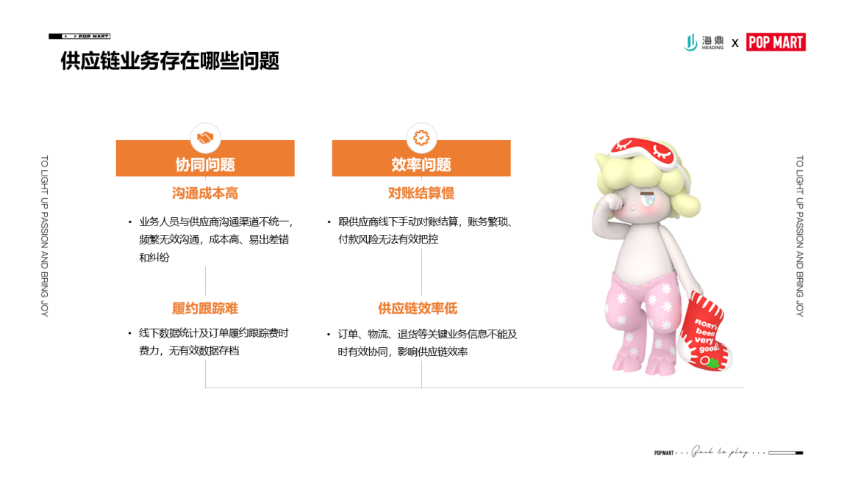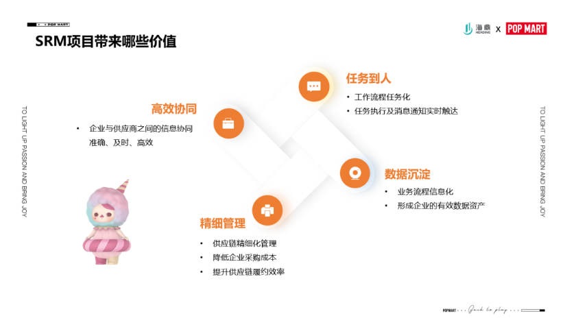 今年年初的時候,海鼎的汪路路總來了一次泡泡瑪特,當(dāng)時我把痛點跟他聊了一下,他就說海鼎有一款產(chǎn)品叫SRM,通過這個契機(jī),我們就把這個項目啟動起來了。