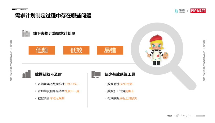 剛才很榮幸聽了陽總關(guān)于生鮮便利店的分享。下面我主要把泡泡瑪特和海鼎這半年來圍繞商業(yè)智能管理系統(tǒng)供應(yīng)鏈信息化這塊的工作跟大家做一個匯報。